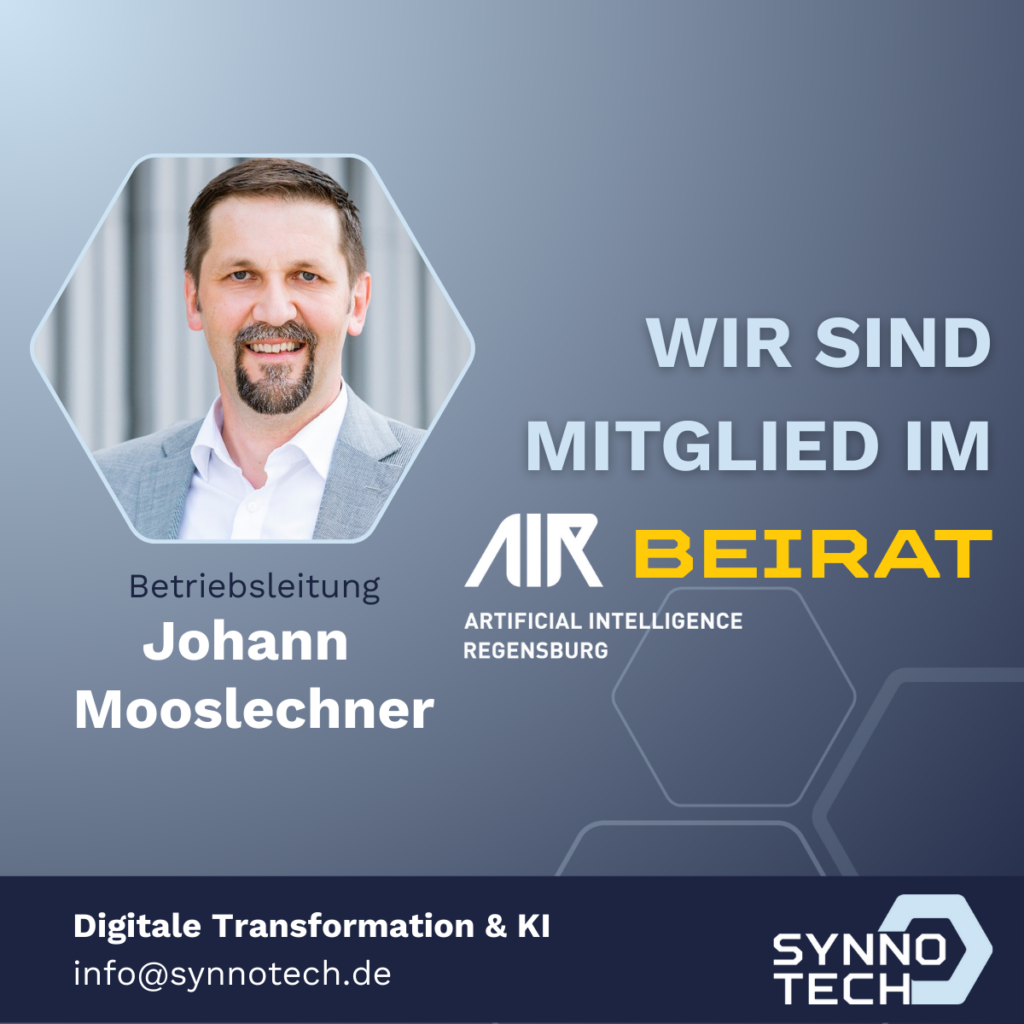 🎉 Wir freuen uns sehr, dass unser Kollege Johann Mooslechner (Betriebsleiter) in den Beirat des KI-Cluster AIR – Artificial Intelligence Regensburg berufen wurde!
